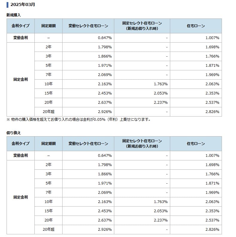 ※新規借り入れ時に物件の購入価格を超えた借り入れの場合、金利が0.05%(年利)上乗せになります。